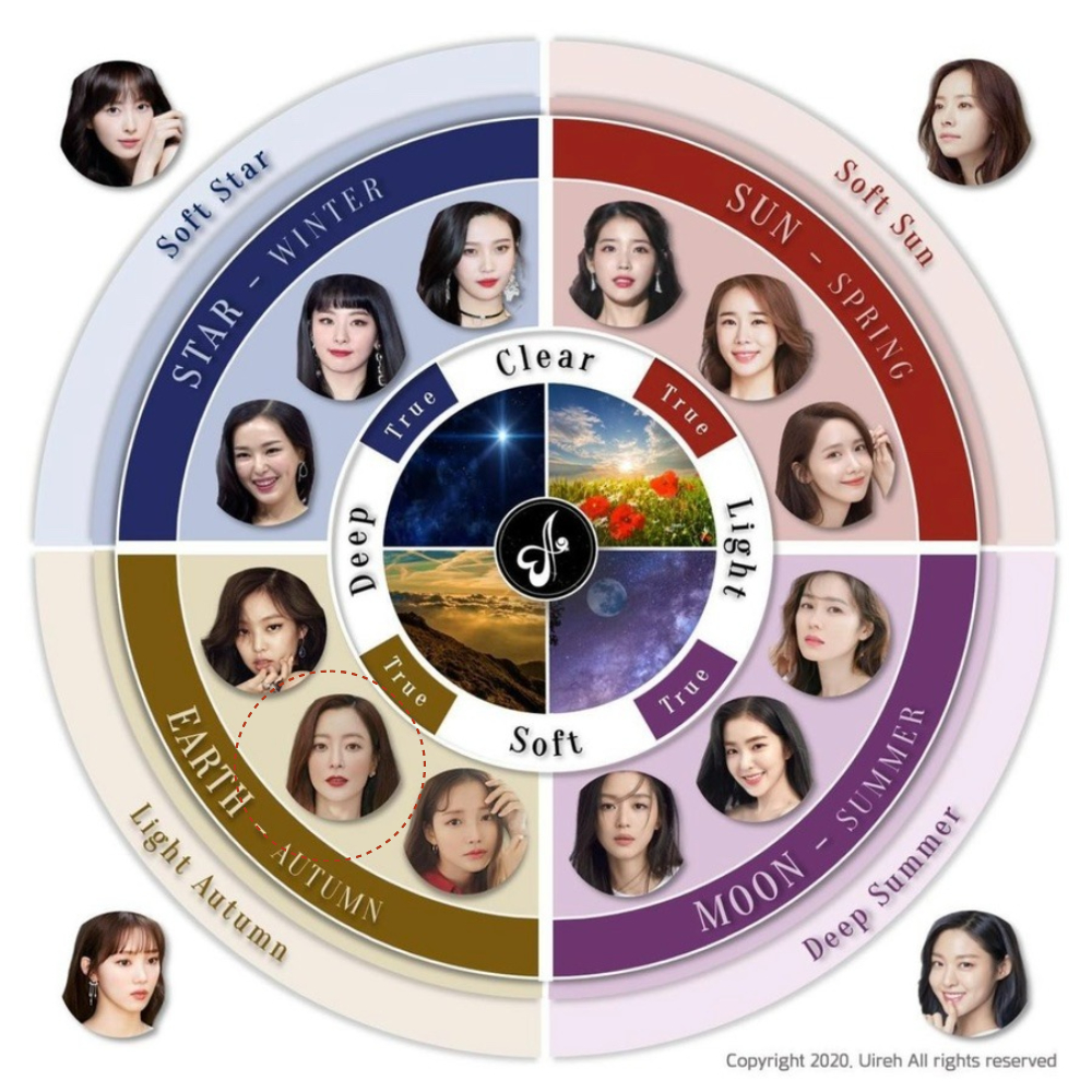 가을 트루 타입은 웜톤 특성이 강하게 나타나며, 피부, 눈동자, 머리카락 색상이 전체적으로 따뜻하고 깊은 색감을 띠는 것이 특징이다.