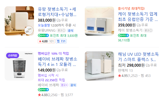 - 추천 제품: 베이비 브레짜, 브라비 / 유팡 UV 살균 소독기